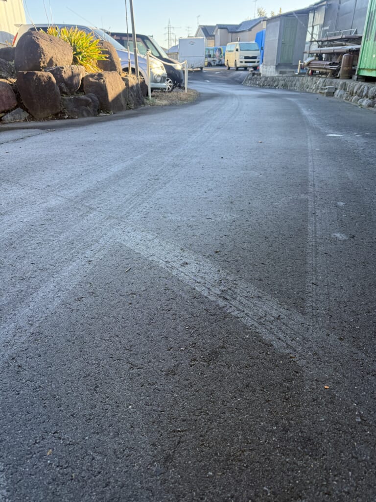 皆さまおはようございます☀ 神奈川県相模原市は本日晴れ気温は現在5℃ほとどなっております 当店裏手にある道路ですが日当たりが悪い影響もあり朝から凍結しておりまし…